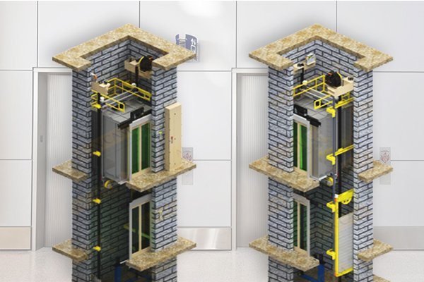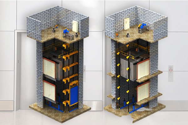 Machine room less elevators are traction elevators that do not have a dedicated machine room above the elevator shaft.